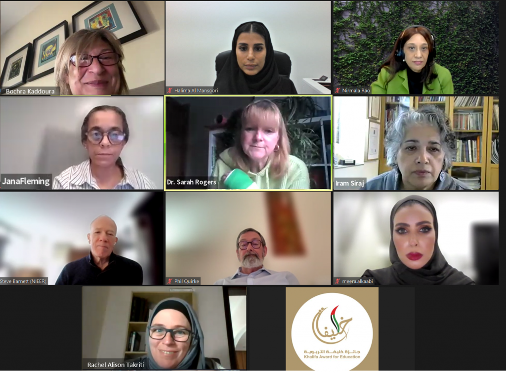 جاء ذلك خلال الاجتماع الذي عقدته اللجنة المانحة ولجنة الفرز لمجال جائزة خليفة العالمية للتعليم المبكر أمس عبر منصة زووم، وذلك بحضور كل من البروفيسور ستيفن بارنت المدير المؤسس للمعهد الوطني لأبحاث التعليم المبكر بجامعة روتجرز بالولايات المتحدة الأمريكية رئيس اللجنة المانحة ، والبروفيسورة إيرام سيراج أستاذ تنمية وتعليم الطفل بجامعة أكسفورد بالمملكة المتحدة، والبروفيسورة نيرمالا راو من جامعة هونغ كونغ، والبروفيسورة جانا فليمنج مديرة إدارة تنمية الطفولة المبكرة في مؤسسة سلامة بنت حمدان آل نهيان، والدكتورة ميرة الكعبي مستشار مدير عام هيئة أبوظبي للطفولة المبكرة ورئيس الشؤون الأكاديمية في الأكاديمية الوطنية لتنمية الطفولة، والدكتور فيليب كويركي العميد التنفيذي للتعليم والدراسات العامة في كليات التقنية العليا سابقا، والدكتورة بشرى قدورة مستشار- استراتيجي في مجال التعليم والرعاية في مرحلة الطفولة المبكرة بهيئة الشارقة للتعليم الخاص، وسارة روجرز الرئيس التنفيذي لشركة الخدمات كويست دايركت الاحترافية ، والدكتورة راشيل تكريتي أستاذ مشارك في تعليم الطفولة المبكرة بجامعة الإمارات العربية المتحدة، والدكتور لؤي جارودي مستشار مجال جائزة خليفة العالمية للتعليم المبكر.